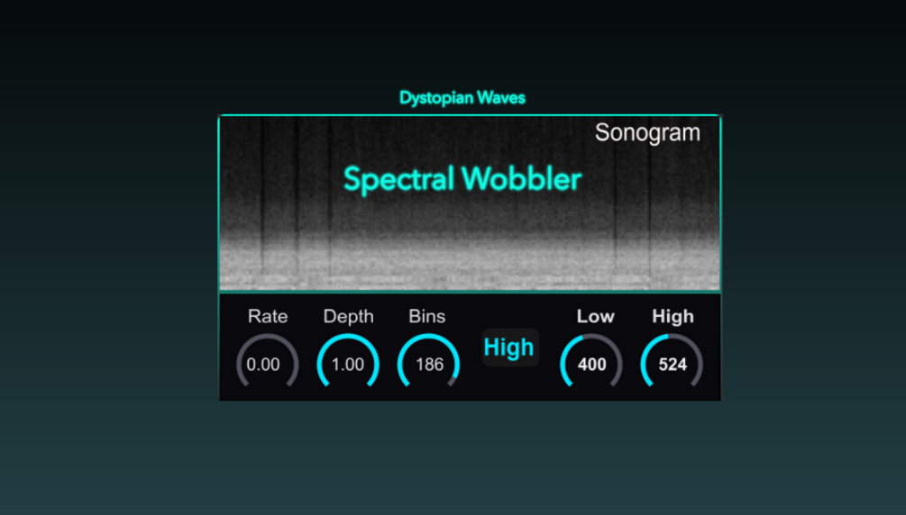 By selectively reading from neighboring frequency bins (based on the LFO), this technique produces a rich range of sonic textures — from subtle, analog-style movement to extreme, detuned warping. Unlike conventional vibrato or chorus effects, Spectral Wobble allows fine control over which parts of the spectrum are affected, with seamless crossfades between low, mid, and high frequency bands.